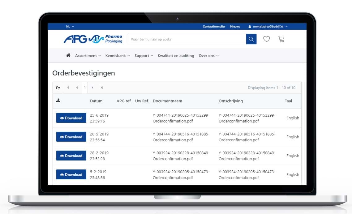 Orderbevestigingen kunnen op elk moment worden gedownload.